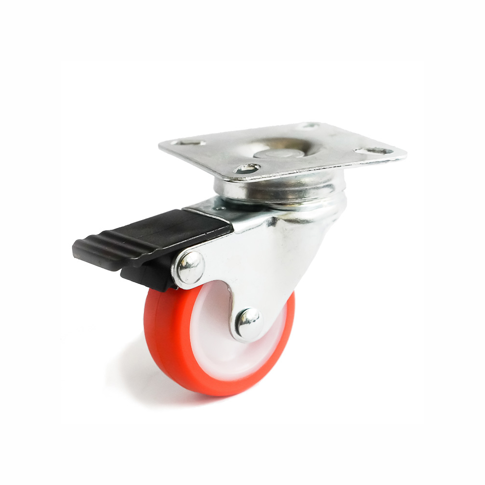 Колесо полиамид поворот. с тормозом 27мм Красный