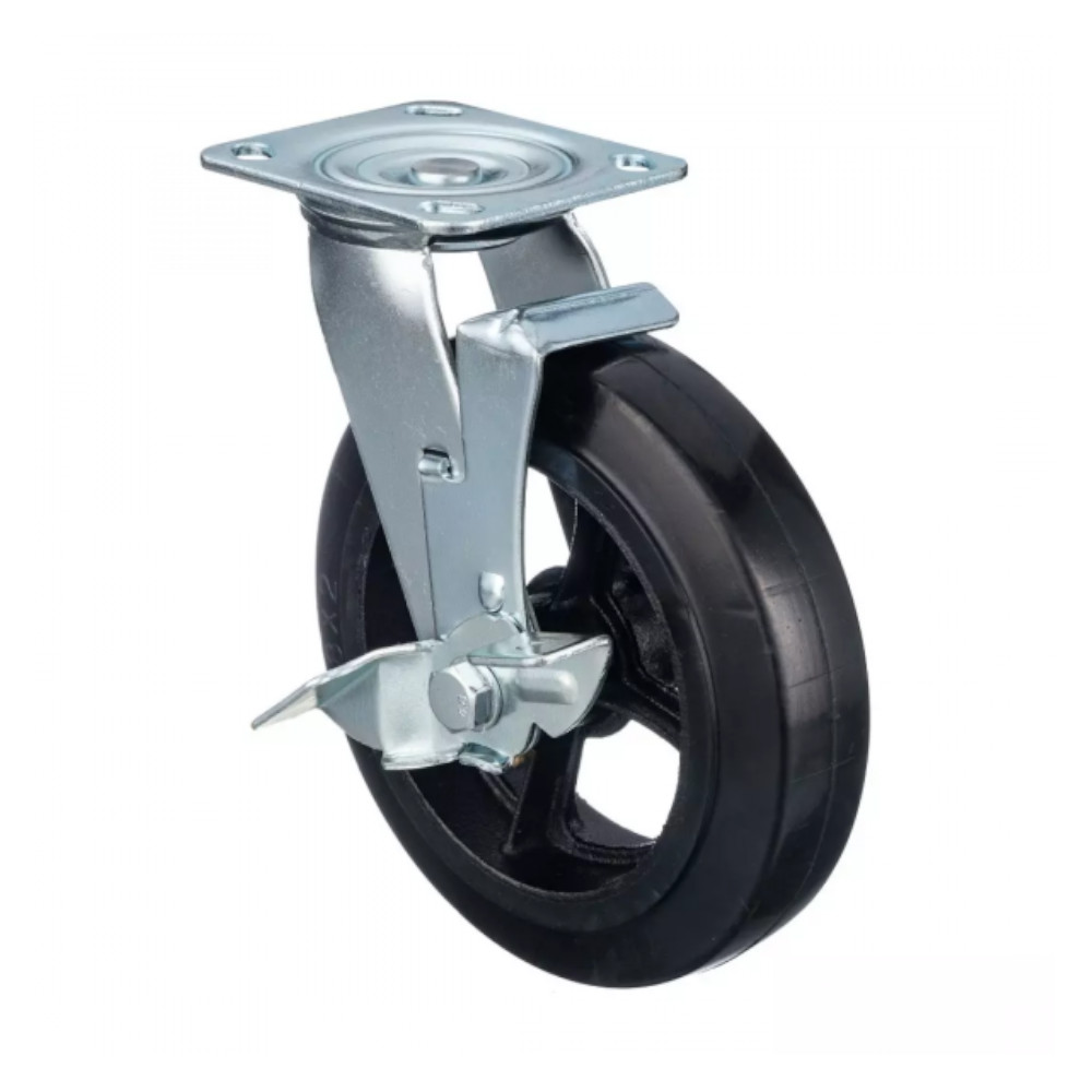 Колесо б/г обрезин. поворот. с тормоз. 200мм (SCDB80)