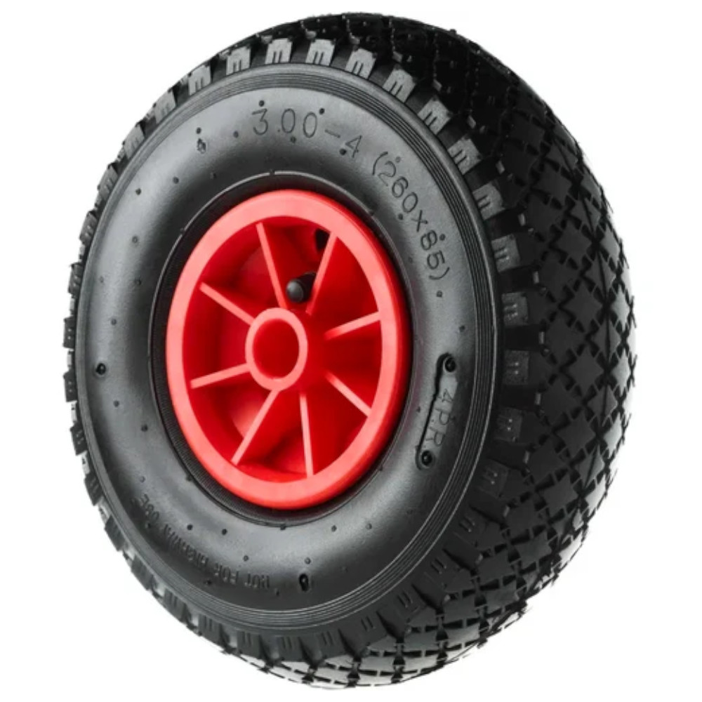 Колесо с симметр. пластик.ступ. 250мм (20мм) (3.00-4), БЕЗ ПОДШИПНИКА пневматическое подходит для малой техники и промышленной мебели, хорошо показывает себя на разных покрытиях, обеспечивает манёвренность и не издает много шума.