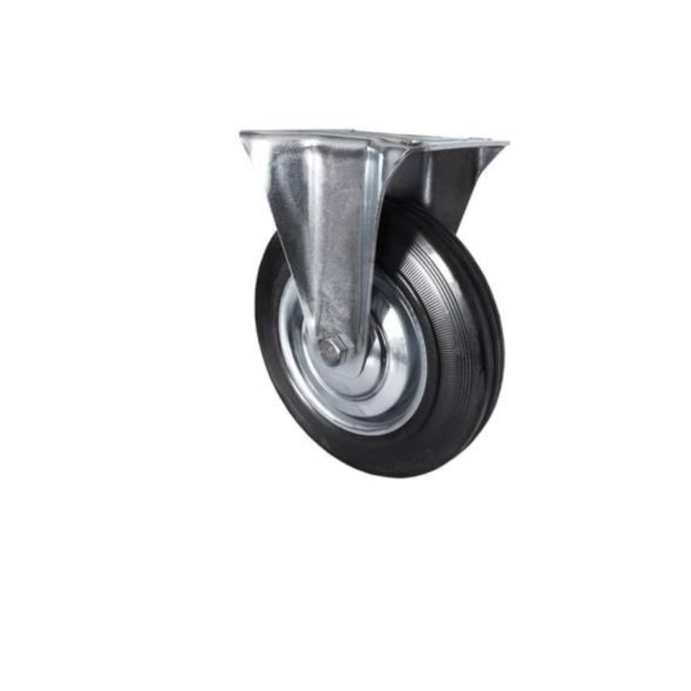 Колесо промышленное неповоротное предназначено для мусорных контейнеров, промышленного оборудования, платформенных тележек, лесов и строительных вышек-тур. Шинка выполнена из литой, черной резины. Колесо имеет стальной оцинкованный обод. В оси установлен роликовый подшипник. Кронштейн с платформенным креплением изготовлен из оцинкованной стали. Отличается средней устойчивостью к воздействию химических веществ. Может передвигаться по грубой поверхности и эксплуатироваться в условиях влажной среды.Грузоподъемность 0,1 т.