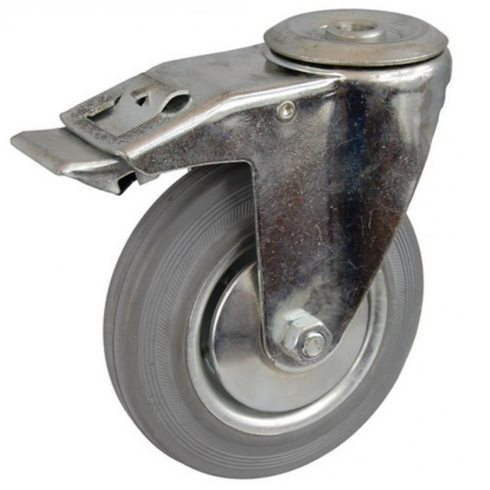 Опора поворотная колесная серая резина болт. креп. с тормозом (металли) 125 мм