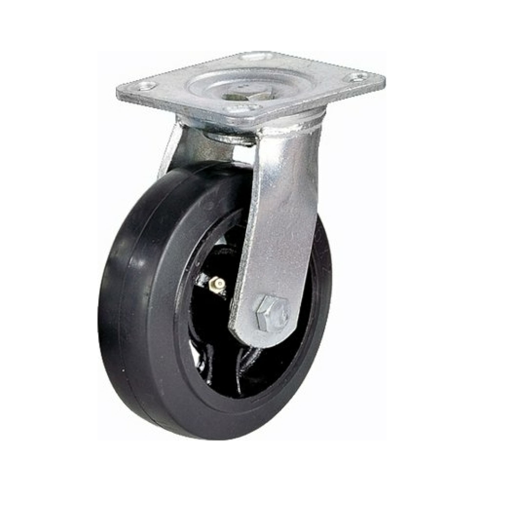 Обрезиненные поворотные колеса SCD55 диаметром 125 мм предназначены для установки на тележки, тачки и другое передвижное оборудование. Основа обода выполнена из высокопрочного чугуна. Колеса имеют пресс-масленку, обеспечивающую своевременное смазывание. Контактный слой изготовлен из эластичной черной резины. Ось имеет роликовый подшипник. Температурный диапазон эксплуатации модели SCD55 составляет от -35 до +50 °С. В качестве крепления использован кронштейн, выполненный из оцинкованной стали.