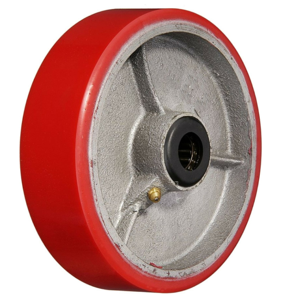 Колеса с полиуретановым покрытием широко применяются в помещении и на улице. Наиболее часто большегрузные колёса устанавливаются в качестве опор на строительную технику, в частности вышки-туры, а так же на технику, имеющую значительную массу веса, складские (транспортировочные) тележки, коммунальная и уборочная техника. Они обладают высокой грузоподъемностью, устойчивостью к порезам, сколам, множеству агрессивных веществ. При длительном нахождении в неподвижном состоянии при максимальной нагрузке не деформируются. Рабочая температура от -35°С до +60°С.