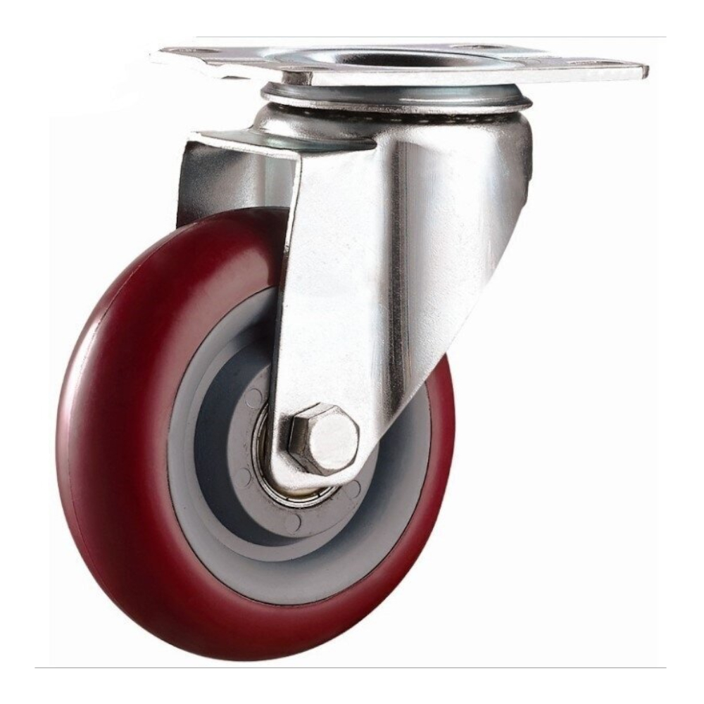 Колесо б/г полиуретан. поворот. ПОЛИПРОПИЛЕН КРАСНЫЙ 100мм (Medium)