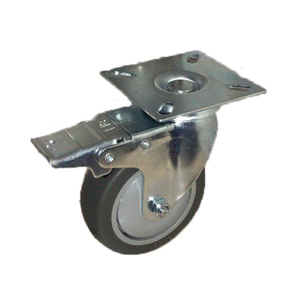 Колесо_ТЕМНАЯ сер.мягкая ГЛАДКАЯ резина поворот. с тормозом 75мм (SCGB93)