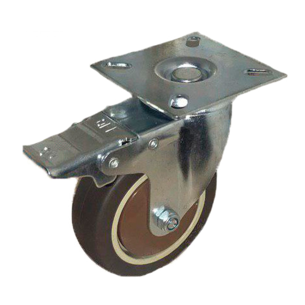 Колесо_коричневая мягкая резина поворот. с тормоз.(металл) 50мм (SCGB(M)25)