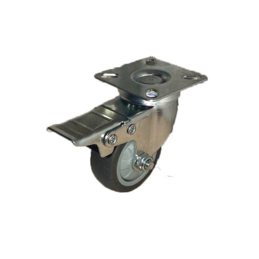 Колесо_ТЕМНАЯ сер.мягкая ГЛАДКАЯ резина поворот. с тормозом 50мм (SCGB25)