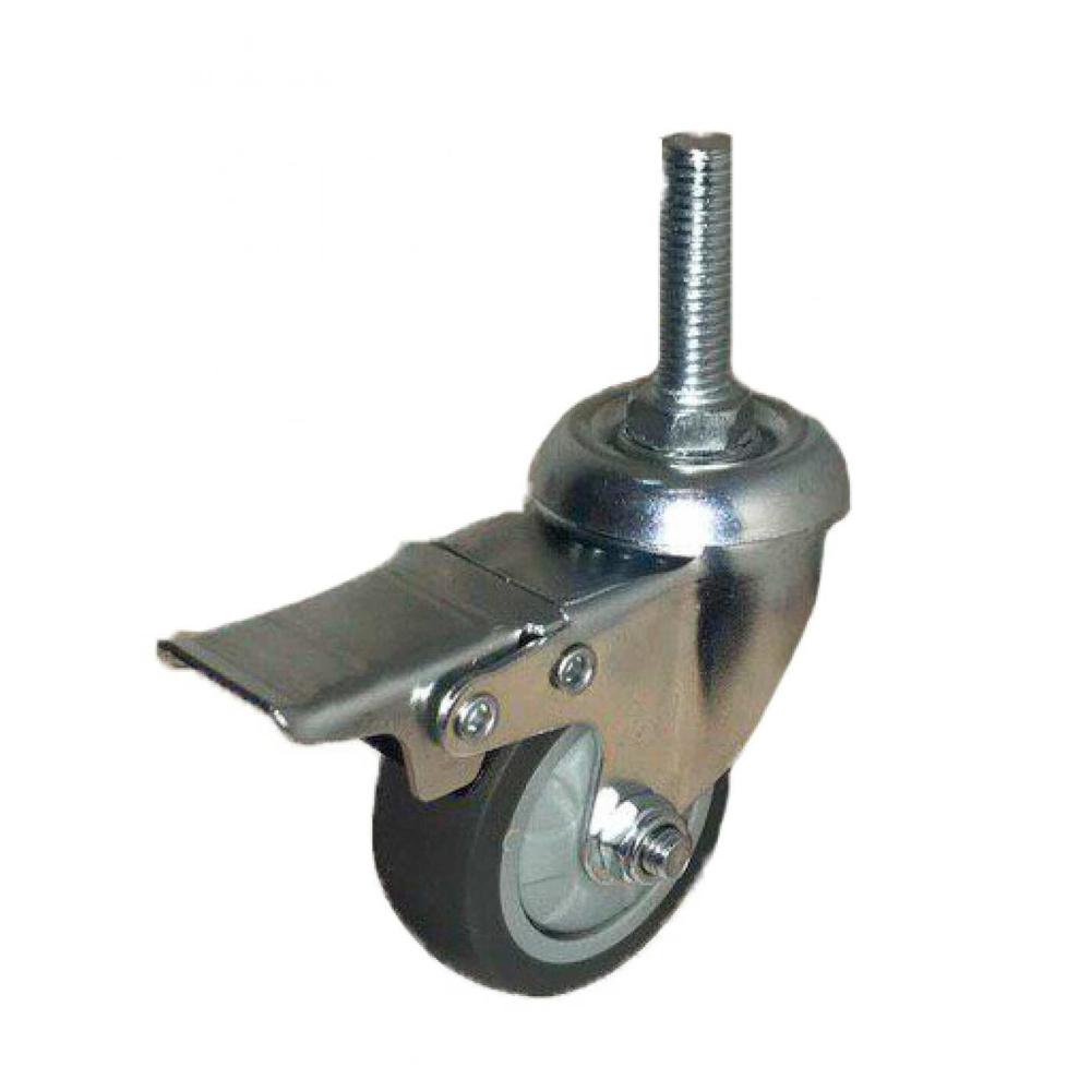 Колеса для малой техники и промышленной мебели, в том числе Аппаратные колеса, принимают на себя основную нагрузку, поэтому подвержены сильному износу. Поэтому и меняются они чаще всего. Мы поможем быстро решить проблему, чтобы исключить длительный простой. Колесо_ТЕМНАЯ сер.мягкая ГЛАДКАЯ резина болт. креп. с тормоз.(М10) 50мм (SCTGB25-10) — модель с большим запасом прочности, выдерживающая 35 кг за счет продуманной конструкции и современных материалов. Она отлично показывает себя на разных покрытиях, обеспечивает маневренность и не издает много шума. Операция по замене очень проста и занимает мало времени.