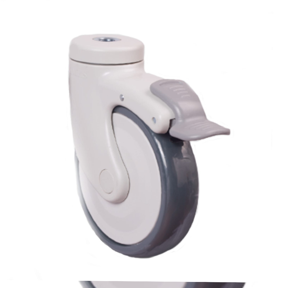 Колесо аппаратное с подшипником поворотное под болт M12 с тормозом 125 мм для медицинского оборудова