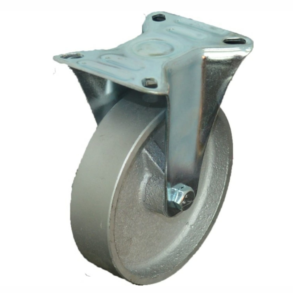 Колесо имеет неповоротную опору, стальной оцинкованный обод и шариковый подшипник скольжения. Возможно использование на твердых полах, благодаря высокой прочности серого чугуна. Не рекомендуется использование на поверхностях, покрытых керамической плиткой.