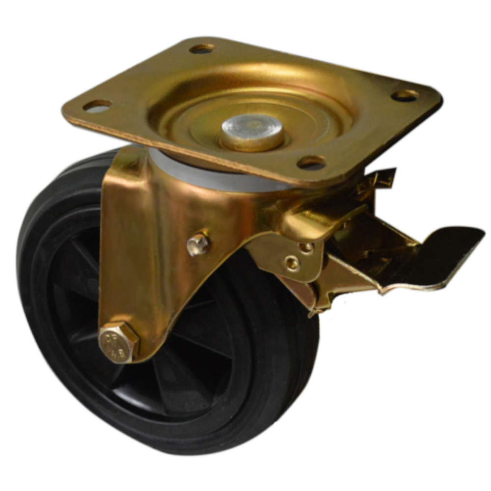 Колесо для мусорных контейнеров УСИЛЕННОЕ АНОД.кронштейн поворотные с тормозом 160мм (SCB63KU)