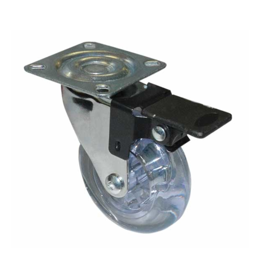 Колесо мебел. поворотное с тормозом 50мм (прозрачный PVC)