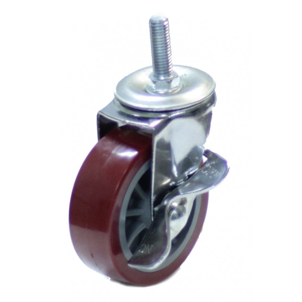 Колесо мебел. поворотное болт.крепление_(М10) с тормозом 75мм (красный пластик)