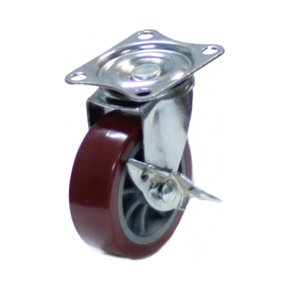 Колесо мебел. поворотное c тормозом 75мм (красный пластик)