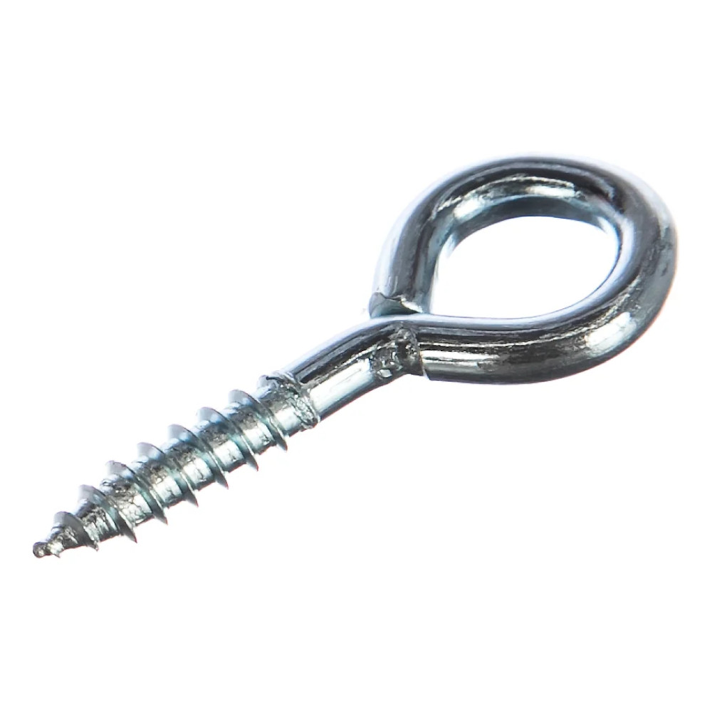 Шуруп-кольцо используется для организации легких такелажных устройств не грузоподъемного назначения. Используется шуруп, в основном, при монтировании несъемных подвесных конструкций, например, фонари, кабели и т.д. Изделие изготовлено из стальной проволоки, а цинковое покрытие защищает метиз от коррозии. Данный шуруп отлично подходит для работы с древесиной, но вкручивать крепеж стоит лишь после предварительно просверленного отверстия.