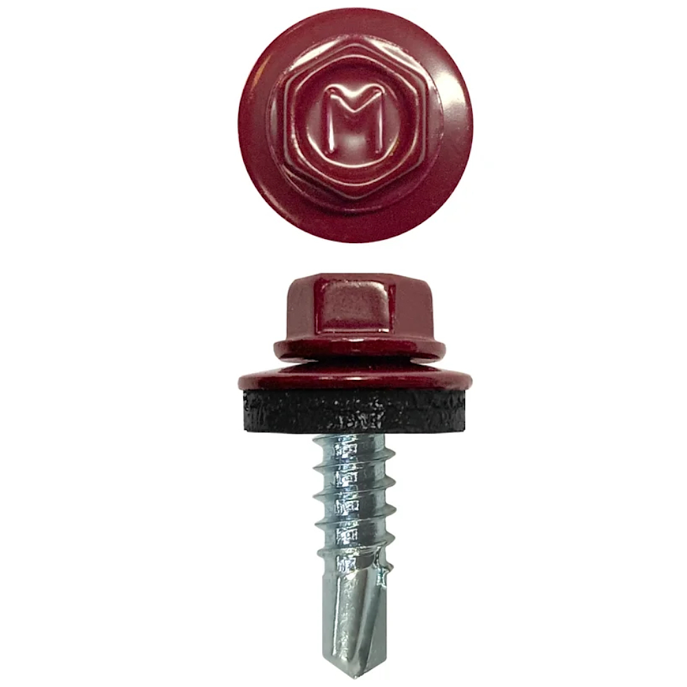 Саморез по металлу Daxmer представляет собой крепежное соединение, которое благодаря EPDM-уплотнителю плотно фиксирует кровельный лист к деревянной или металлической обрешетке, а также защищает от проникновения влаги под полотно. Изделие изготовлено из стали и окрашено порошковой краской в винно-красный цвет.