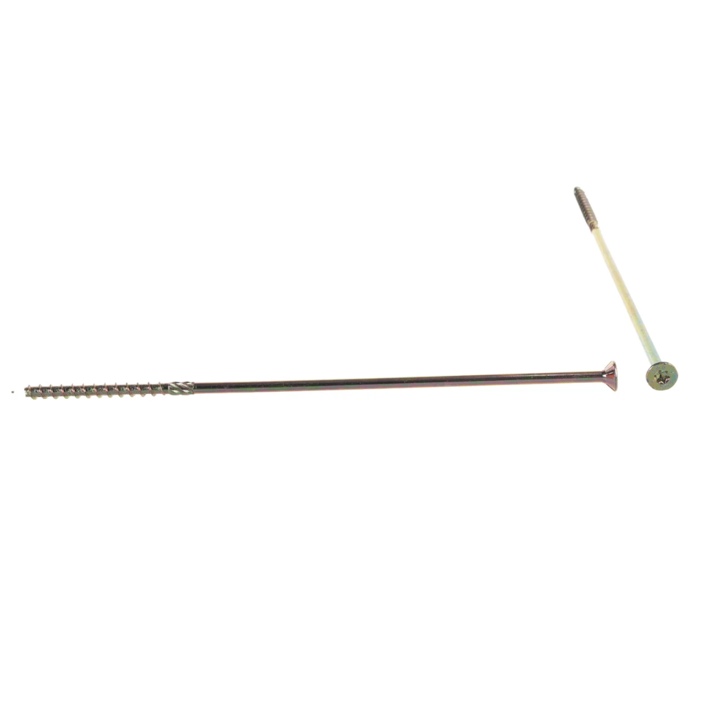 Саморез конструкционный потай Torx 8х300 имеет специальную форму острия, которая рассверливает отверстие в материале. Фреза на ножке защищает проходное отверстие в дереве, тем самым снижая трение и облегчая закручивание.