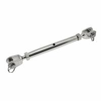 Талреп вилка-вилка DIN 1478 - металлический корпус закрытого типа имеет правую и левую резьбовую пару деталей и при вращении рычагом в одну из сторон приводит к удлинению или укорачиванию всей конструкции. Позволяет регулировать натяжение тросов, канатов, цепей без использования дополнительного силового оборудования.