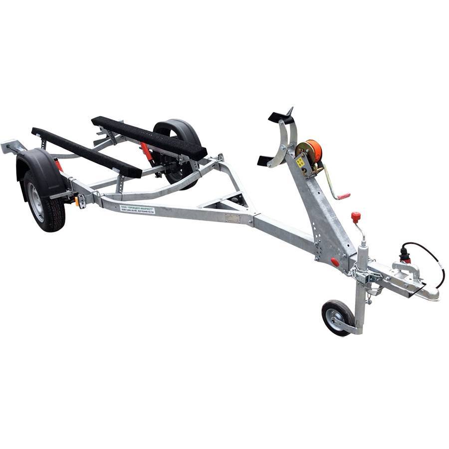 ● Оцинкованная стальная рама выполнена из замкнутого профиля, имеет большой запас прочности и позволяет уберечь жгут электропроводки от внешних повреждений по все длине прицепа. Изогнутая конструкция поперечин рамы обеспечивает максимально низкую посадку судна, что снижает центр тяжести и повышает устойчивость прицепа во время движения, передняя вилка складывается