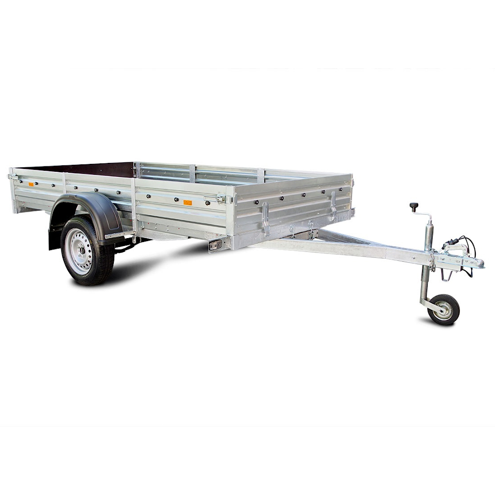 Откидная платформа значительно облегчает загрузку (выгрузку) техники и сыпучих материалов. В закрытом положении, платформа фиксируется с помощью замков с предохранительной защелкой, которая исключает самопроизвольное открытие. Оцинкованное V-образное дышло выдерживает сильные динамические нагрузки. Оно выполнено из замкнутого стального профиля, что повышает его надёжность и позволяет уберечь жгут электропроводки от внешних повреждений. Оцинкованная стальная рама собрана на болтовых соединениях, что существенно надёжней сварного исполнения и обеспечивает лёгкую замену деталей в случае их механических повреждений. Дно прицепа выполнено из многослойной ламинированной фанеры с противоскользящим покрытием. Устойчиво к износу и воздействию влаги. Борта выполнены из оцинкованного стального листа с дополнительной штамповкой рёбер жёсткости. Рёбра жёсткости позволяют повысить устойчивость бортов к динамическим и ударным нагрузкам. Передний и задний борта — откидные, с накладками из фанерного листа. На бортах установлены усиленные бортовые замки производства «МЗСА». Оцинкованные стальные стойки бортов оборудованы петлями крепления груза (4 шт.). Благодаря дополнительным разделительным стойкам повышается жёсткость бортов и их сопротивление излому.