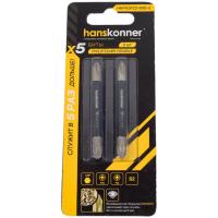 Биты двустор., PH2xPZ2x65мм HKPH2PZ2-65D-2, сталь S2, Diamond, 2шт,Hanskonner