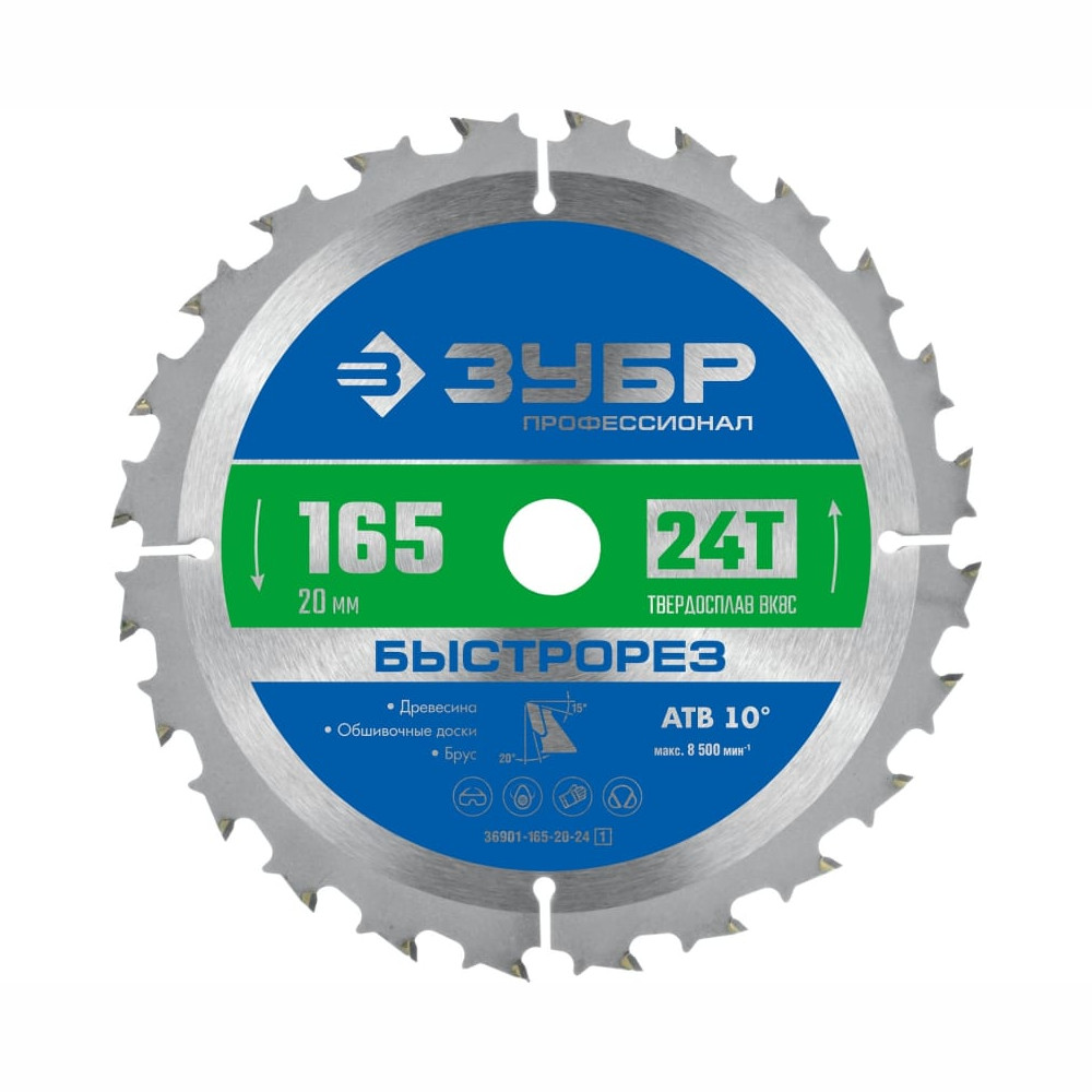 Диск по дереву, Профессионал (36901-165-20-24) ЗУБР Быстрорез, 165 x 20 мм, 24Т, пильный
