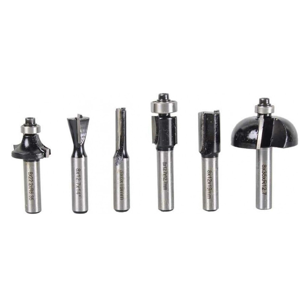 Набор фрез по дереву Вихрь 6шт с хвостовиком 8мм в кейсе для работы с фрезерными станками и ручными фрезерами. Режущие кромки затачиваются на современных 5-ти координатных станках с ЧПУ, что обеспечивает точную геометрию. Фрезы изготовлены из высококачественной инструментальной стали с твердосплавными режущими элементами, что увеличивает срок службы. В комплекте деревянный кейс для удобства хранения и транспортировки.