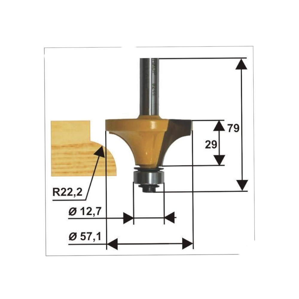 Фреза кромочная калевочная ф57.1х29, r22.2, хв.12мм