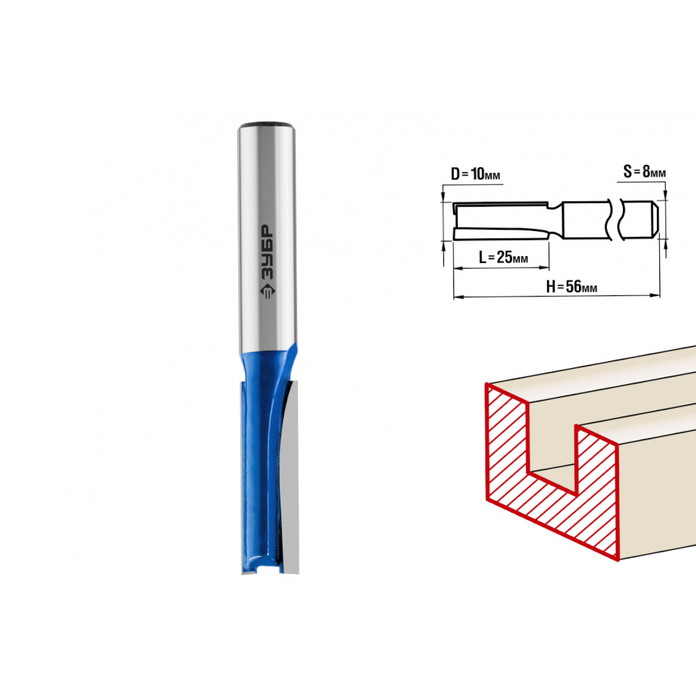 Фреза пазовая прямая,D-10мм dl-25мм, хв.-8мм,ЗУБР Проф.