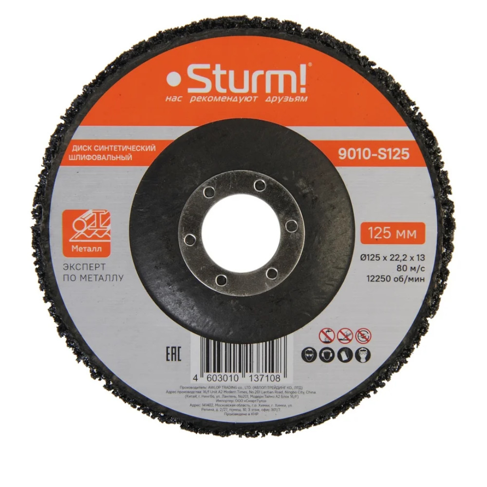 Диск синтетич. шлифовальный Эксперт по металлу 125 мм, Sturm!