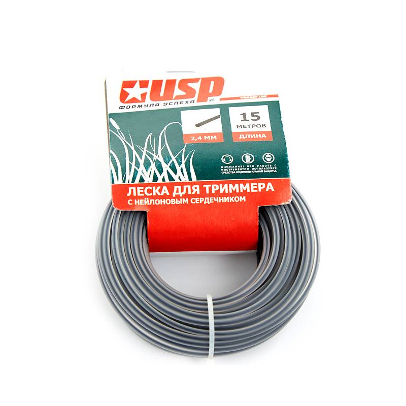Леска для триммера с нейлоновым сердечником, длина 15м, профиль-квадрат, диаметр 3.00 мм.
