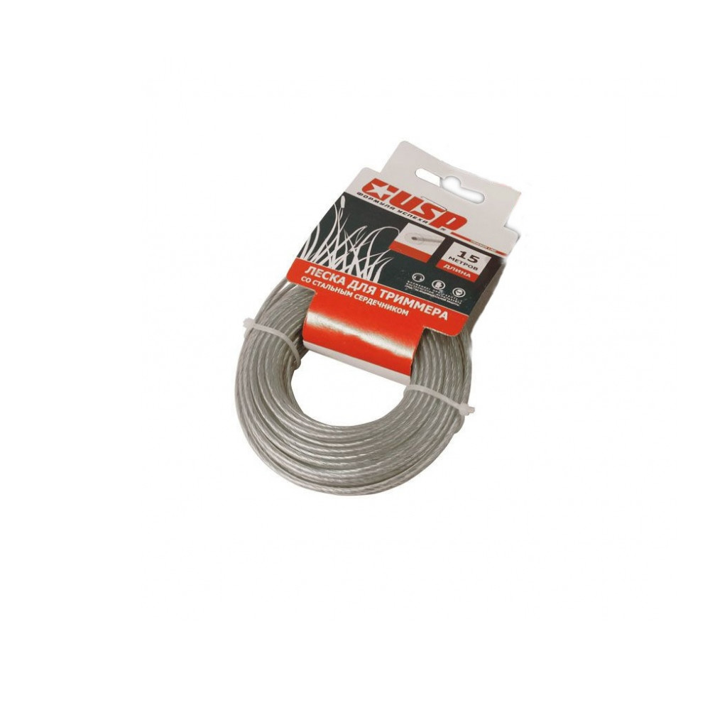 Леска для триммера со стальным сердечником, длина 15 м, профиль - круг, диаметр 3.0 мм