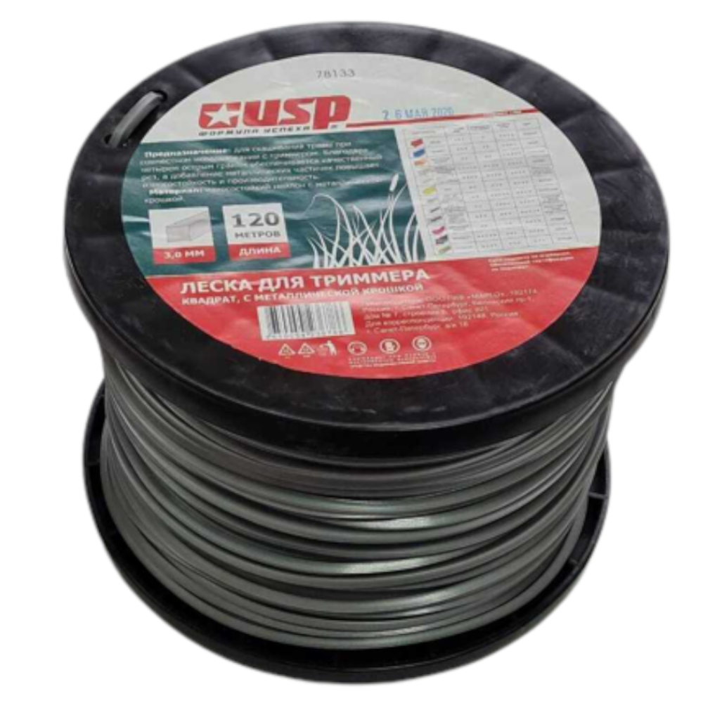 Леска для триммера с металлической крошкой длина 120м, профиль - квадрат, диаметр 3,0мм