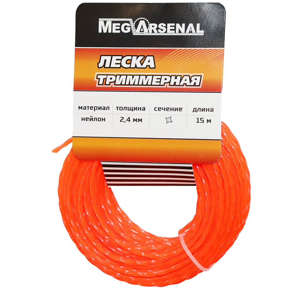 Леска триммерная MegArsenal d2.4 скрученный квадрат 15м