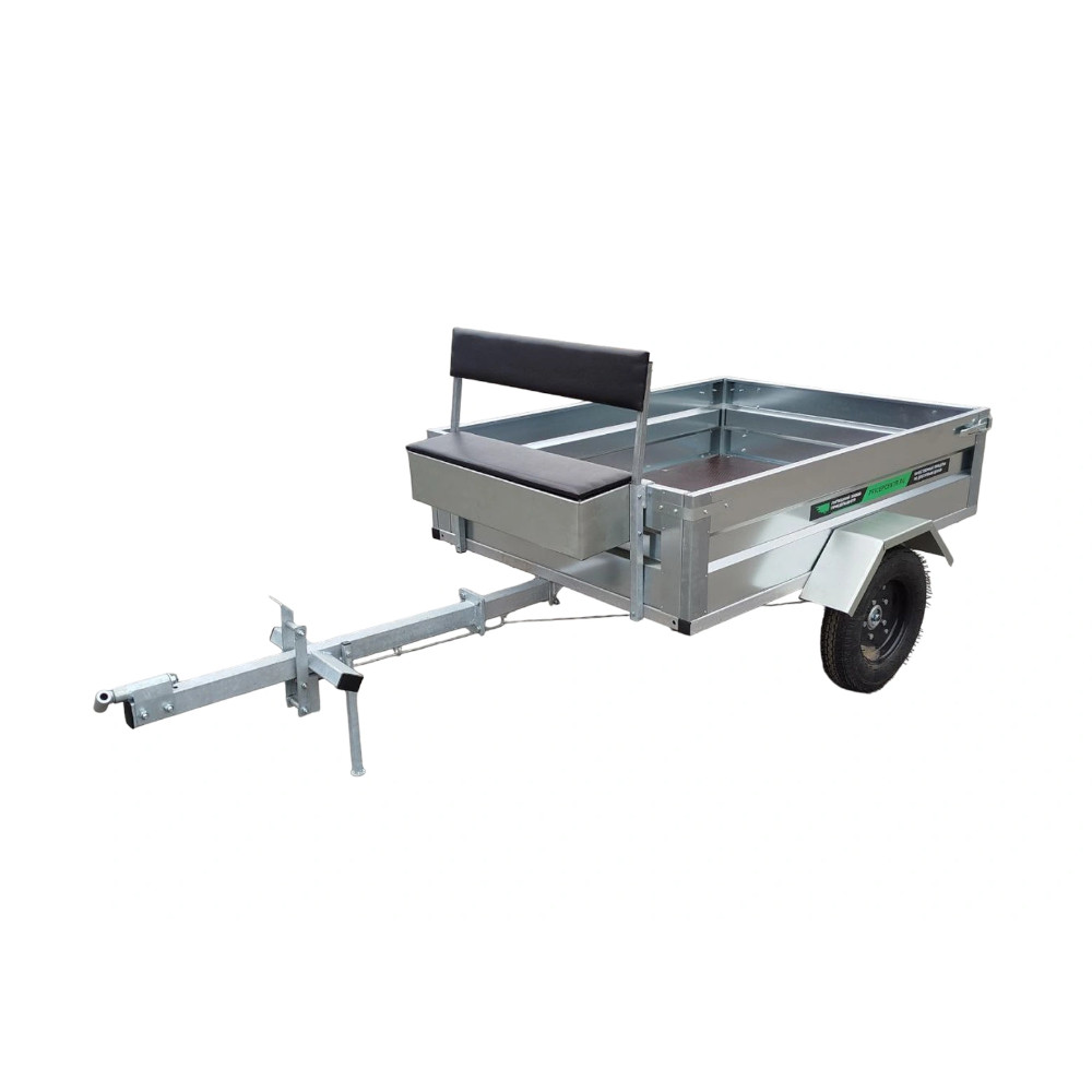 Прицеп-телега для мотоблока АЯКС 500 подходит для перевозки грузов в сельском хозяйстве и для строительных задач. Лёгкое сцепное устройство (можно заменить на стандартную сцепную головку для фаркопа). Борта из оцинкованной стали толщиной 0,8 мм. Рама и кузов обработаны методом горячего цинкования.