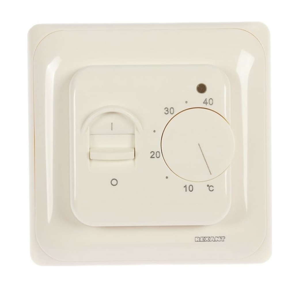 Механический термостат R70XT от REXANT бежевого цвета обеспечивает регулировку температуры в диапазоне от +5°C до +40°C. Имеет высокую коммутационную способность контактов до 16 А (3500 Вт), что позволяет использовать его для управления большим количеством электроприборов.