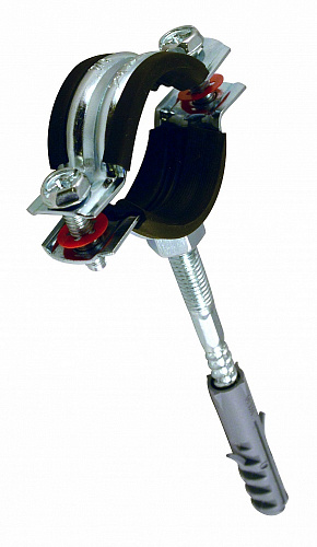 Хомут металлорезиновый с дюбелем и шурупом 2" (60-64 мм) CTM предназначен для крепления трубы или целой системы труб к неподвижной вертикальной или горизонтальной поверхности (пол, стена, потолок).