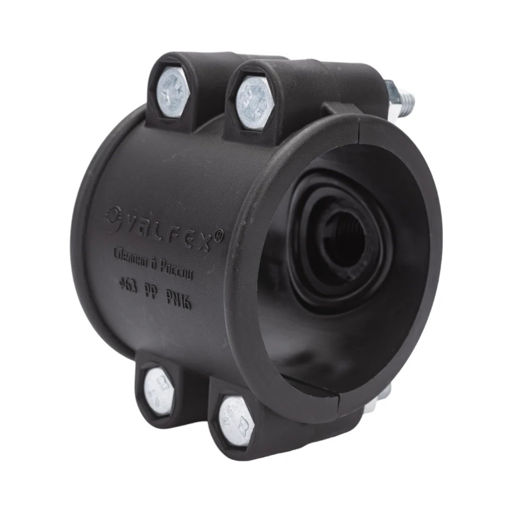 Седелка с внутр.рез.63-1/2 предназначена для отвода второстепенной трубы от основной магистрали в полиэтиленовом водопроводе. Применяется на трубопроводах холодного водоснабжения с температурой не более 40°С. Седелки болтовые хорошо зарекомендовали себя, как элементы быстрой врезки, а также как герметичные резьбовые отводы, без разрезания трубы.