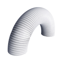 Гибкий гофрированный спирально-навивной воздуховод из алюминиевой фольги с покрытием белого цвета, применяется для декоративного оформления приточно-вытяжной вентиляции и кондиционирования жилых, коммерческих и производственных помещений. Обычно их устанавливают в тех местах, где ограничено пространство, а вентиляционную систему требуется установить быстро и легко. Поскольку алюминиевые воздуховоды принадлежат к негорючим материалам, то могут выдерживать повышенные температуры, их можно применять в тех местах, где установка гибких полиэфирных воздуховодов нежелательна. Воздуховоды производятся по уникальной технологии, использующей метод «Тройного замка» (тип сцепления алюминиевой фольги при формировании воздуховода), что придает изделию особую прочность, обеспечивая герметичность шва при растягивании и сгибании воздуховода под различным углом. Минимально допустимый угол изгиба 0,7 диаметра. Внимание! При растягивании полугибкого воздуховода до максимальной длины воздуховод незначительно раскручивается по оси вращения! Соединяется при помощи соединительных элементов соответствующего диаметра.
