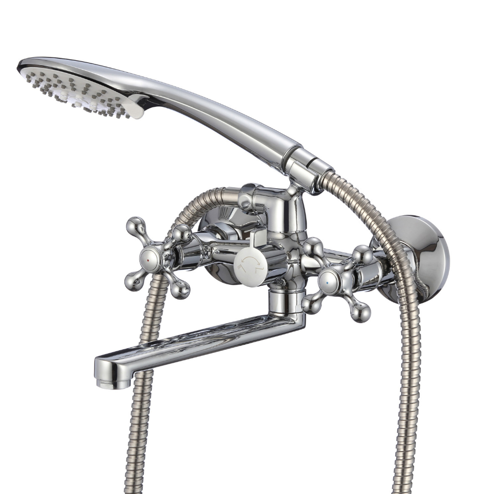 Смеситель для ванны Duplex традиционного дизайна с удобными крестообразными ручками. Большой угол поворота ручек (180 градусов) обеспечивает точную регулировку температуры и напора воды, а термоизоляция не позволяет им нагреваться – взрослые и особенно дети защищены от случайных ожогов.