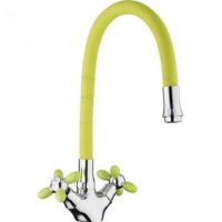 Смеситель кух керам.кран-букса FRUD высокий,руч/крест,гибкий излив,зел/хром R44127-6