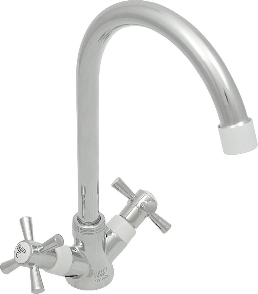 Смеситель кух керам.кран-букса FRUD высокий,руч/крест,белый/хром с гайкой R49118-7