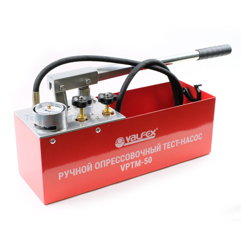 Ручной опрессовочный насос Valfex CM-50 с резервуаром объемом 12 литров. Предназначен для гидравлических испытаний на давление и герметичность различных емкостей и систем трубопроводов при работе в условиях умеренного климата, в интервале температур окружающей среды от 10 ˚С до 50˚С.