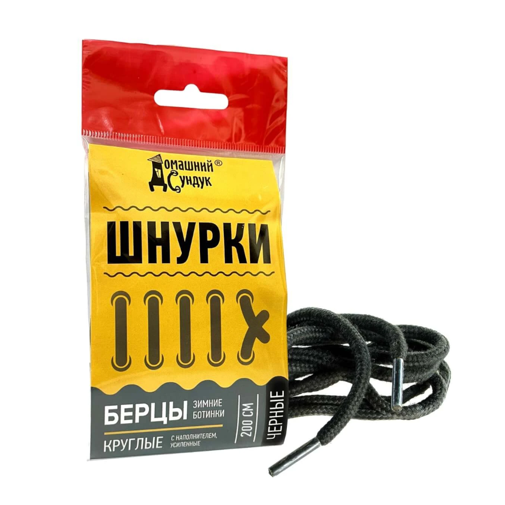 Шнурки "Домашний Сундук" БЕРЦЫ круглые с наполнителем УСИЛЕННЫЕ 200см (Черные) ДС-386-2