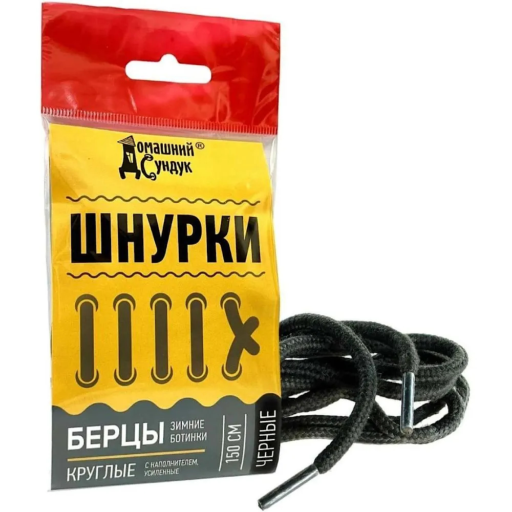 Шнурки "Домашний Сундук" БЕРЦЫ круглые с наполнителем УСИЛЕННЫЕ 150см (Черные) ДС-386-1