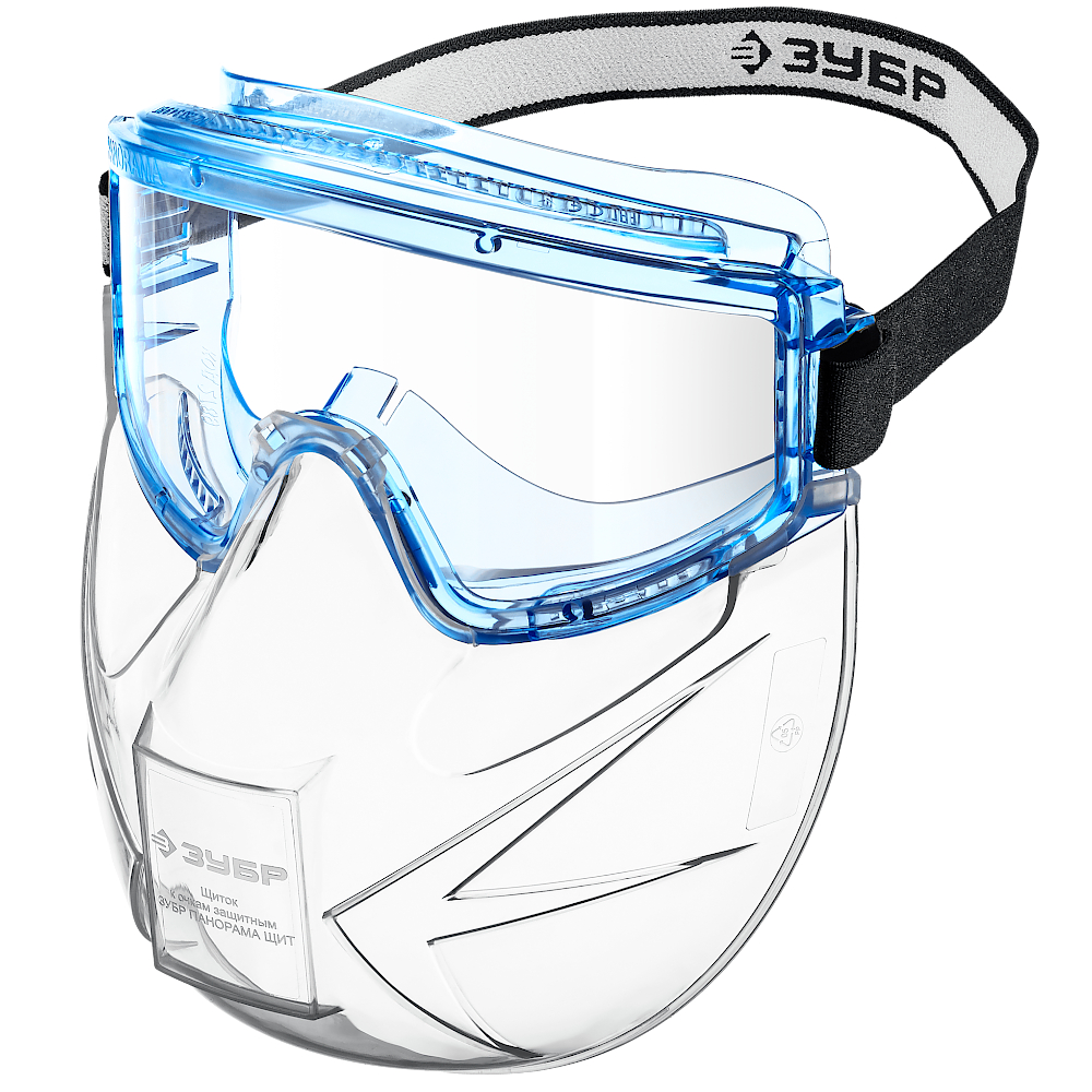 Защитные очки ЗУБР ПАНОРАМА ЩИТ в комплекте со щитком, непрямая вентиляция, Профессионал (арт. 110233) это надёжная защита для профессионального и домашнего использования. Защитный щиток обеспечивает оптимальную защиту лица, позволяет использовать респиратор. Линза из поликарбонат обладает высокой прочностью. Панорамное стекло обеспечивает широкий угол обзора. Покрытие на наружной стороне обеспечивает устойчивость к истиранию и царапинам. Антизапотевающее покрытие на внутренней стороне. Возможность использования с корригирующими очками. Непрямая вентиляция для работы в условиях запылённости. Мягкий и комфортный для ношения ПВХ корпус. Регулируемая наголовная лента.