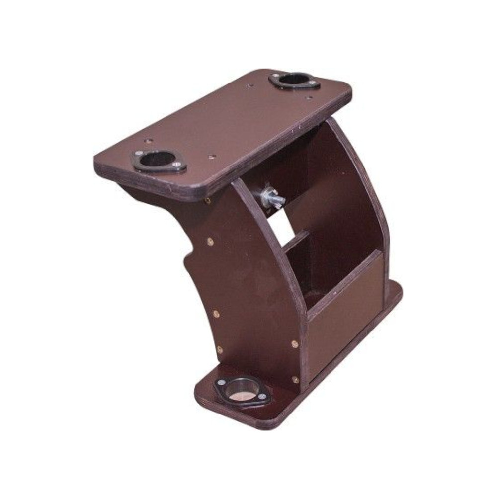 Подставка под эхолот с аккумулятором 2 держателя удочки предназначена для установки на ПВХ лодки дополнительного оснащения: экрана эхолота, навигатора, аккумулятора, держателей удилищ. Выполнен из водостойкой фанеры. Регулировка лик-паза позволяет установить на любой баллон диаметром до 50 см.