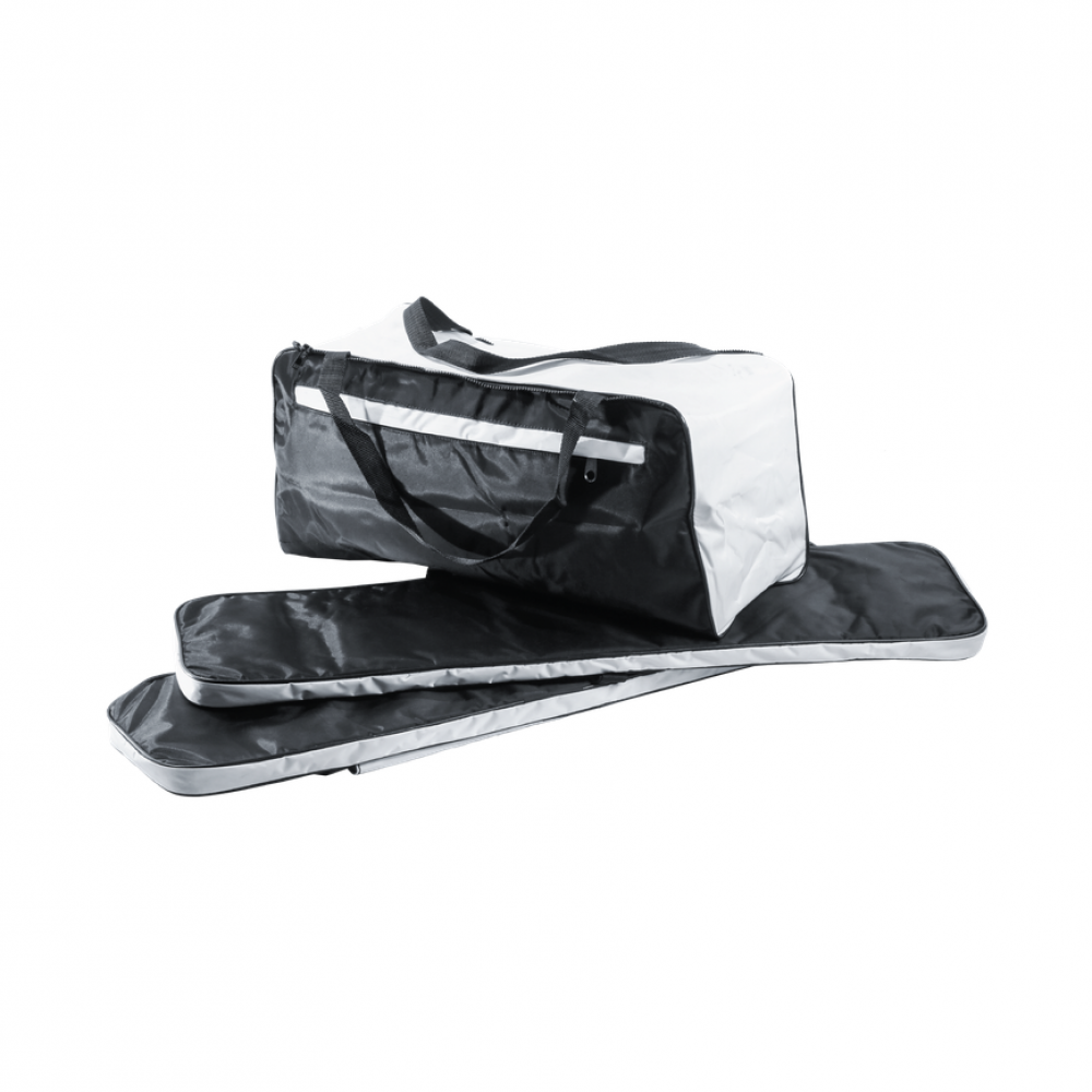 Мягкие накладки на сиденья, существенно, повышают уровень комфорта при длительном пребывании в лодки. Изготовляются компанией "Мастер лодок" из специализированной водоотталкивающей ткани Оксфорд и многослойного изолона с "нулевым" влагопоглощением. Закрепляются на сиденье ремнями-стропами с фиксаторами "крыло". Комплект состоит из двух накладок и оснащен съемной сумкой для хранения снастей. Сумка с ручками для переноски имеет два отдела - основной, объемом 25 литров, и малый для хранения мелочей. Оба отдела оборудованы застежками на молнии с защитой от брызг.
