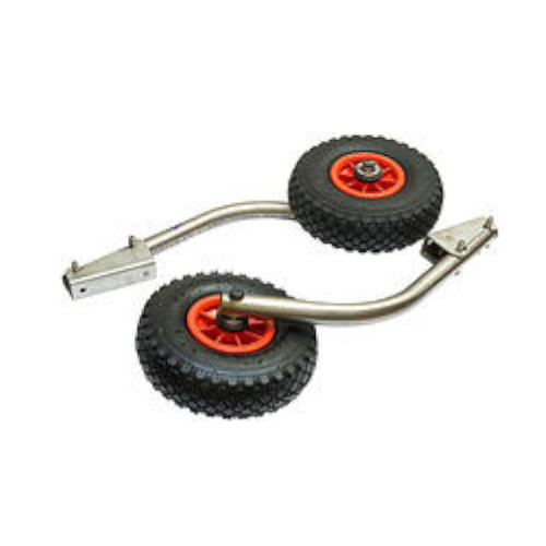 Транцевые колеса выполнены из полированной нержавеющей стали. Они служат для перемещения лодки по суше, спуска на воду и вывода из воды на берег вручную одним человеком с установленным мотором и багажом. Пневмошины позволяют перемещать лодку по пересеченной местности, в том числе по прибрежному песку. Колеса крепятся к внешней стороне транца, таким образом, чтобы их можно было сложить вверх и вниз беспрепятственно. Механизм установки колес позволяет приводить их в рабочее состояние по мере необходимости и убирать, когда лодка спущена на воду.