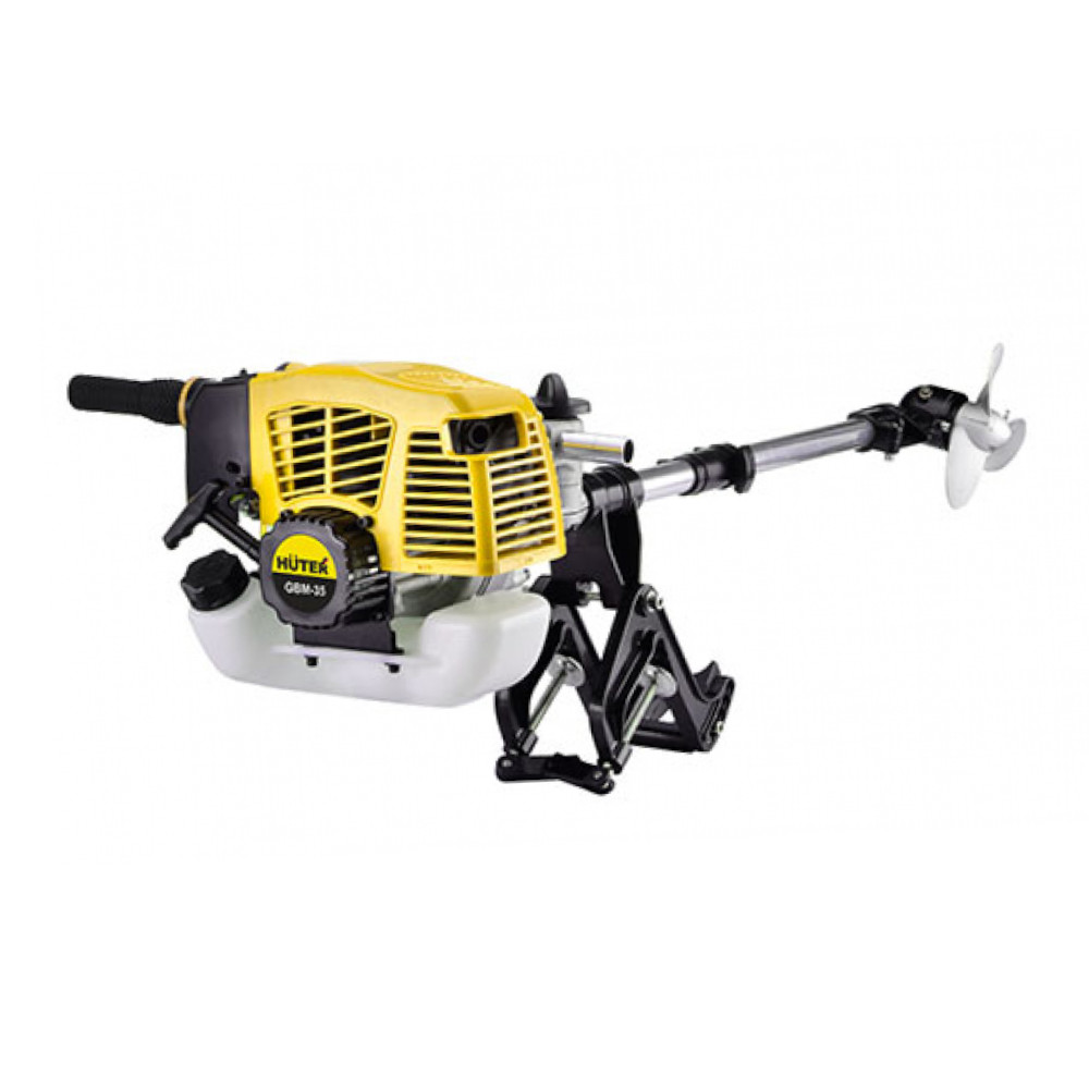 Лодочный мотор Huter GBM-35 70/13/10 предназначен для использования на лодках длиной до трех метров и маломерных судах. Компактный топливный бак не занимает много места и позволяет преодолевать значительные расстояния без дозаправки. Управление производится рукояткой румпеля, которая осуществляет корректировку оборотов двигателя с поправкой на волны. Транцевое крепление дает возможность выбора высоты и угла установки мотора - удобно при езде по мелководью. Система запуска ручная. Тип рулевого управления румпель. 1 цилиндр. Румпель поворотный. Длина вала 750 мм. Объем двигателя 58 см³. Система подачи топлива карбюратор. Двухтактный двигатель. Сцепление центробежного типа. Функция противовращения вала нет. Индикатор давления масла нет. Аварийный выключатель нет. Сухой вес 9,4 кг.